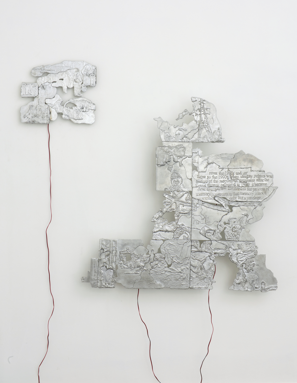 Aliona Ciobanu’s practice evolves from a study that deconstructs collective memory and political narrative, then redeposits them in a language that overlaps sculpture, writing and sound. She adopts a conversational approach with matter that, through processes of fusion, impression and transformation, releases it from its normative meaning, transforming it into a terrain open to the construction of new narratives. The artist also works with impalpable mediums, layering her material landscapes with field recordings and textual experiments. Her work is articulated as a dialogue between bodies, objects and technologies, in which elements such as USB sticks, keyboards or archive photographs become tools for reflecting on the non-linear construction of contemporary memory. Ciobanu removes ideologically charged objects from their propagandistic function and relocates them in a subjective, organic and imperfect memorial dimension. Her work proposes alternative visions to the sites of collective memory, which are often marked by political dogma, and instead enhances fragmentary – but above all unmediated – stories that come directly from the people. Poor, ordinary, widely used in both domestic and public spheres during the Soviet era, recycled aluminium is central to this discourse: through processes of melting and reshaping, the metal is transformed into a narrative device capable of holding and rewriting stories. This material, steeped in geological and historical memory, becomes the main voice of Ciobanu’s production, which investigates social memory, cultural colonisation and propaganda, drawing on the history and political complexities of her native Moldova.