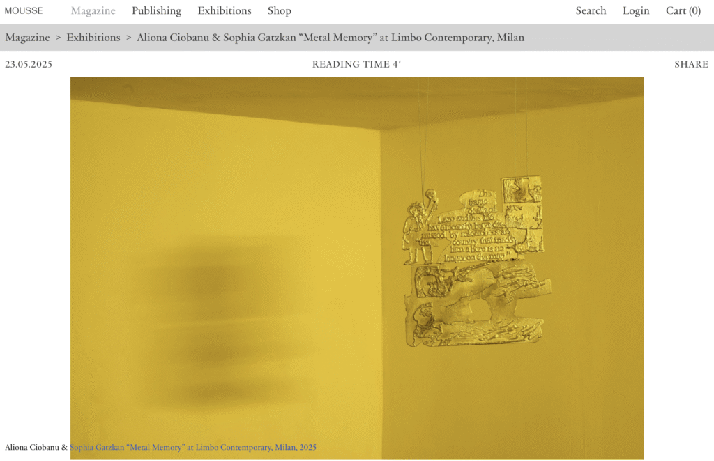 Mousse Magazine | Aliona Ciobanu & Sophia Gatzkan “Metal Memory”